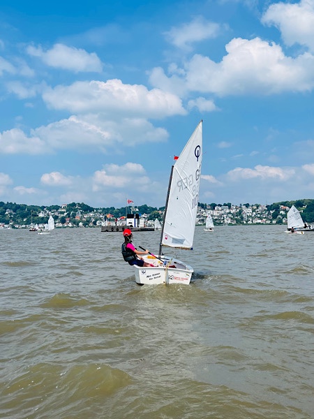 Mein Mann segelt seit seiner Kindheit. Im April 2021 begann unsere Tochter E. im Alter von 8 Jahren mit dem Segeln bei einem Segelclub an der Alster, ich folgte im August 2021. Unsere Kleine hat nach den Sommerferien 2022 knapp eine Woche nach ihrem 7. Geburtstag nun auch mit diesem Sport angefangen. Mein Mann hat inzwischen hauptsächlich auf die andere Seite gewechselt und in unserem Segelclub eine ehrenamtliche Tätigkeit als Trainer der ganz Kleinen gestartet. Die große Tochter hatte dieses Jahr einige Regatten und zwei Segelfreizeiten (=organisierte Segelreise/Feriencamp). Die Kleine stellte nach dem zweiten Segeltraining fest, dass mitmachen anstrengender ist als zuschauen und ich segel einfach nur so, damit ich weiß, wovon meine Familie spricht. ☺️
