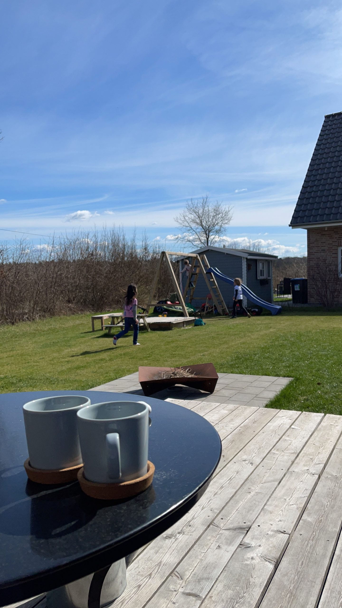 - Schaukel für die Kinder, Tee und Kaffee für die Eltern