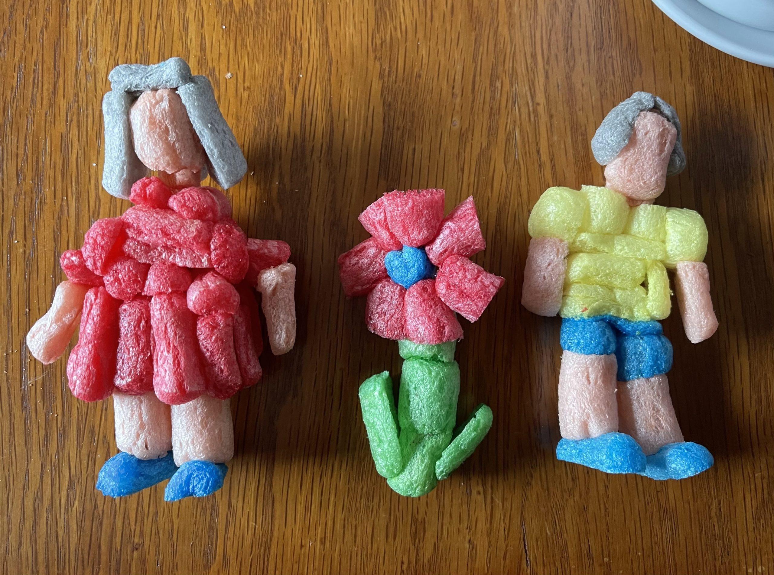- Die Kinder haben eine Blume, Oma und Opa aus Playmais gebastelt.