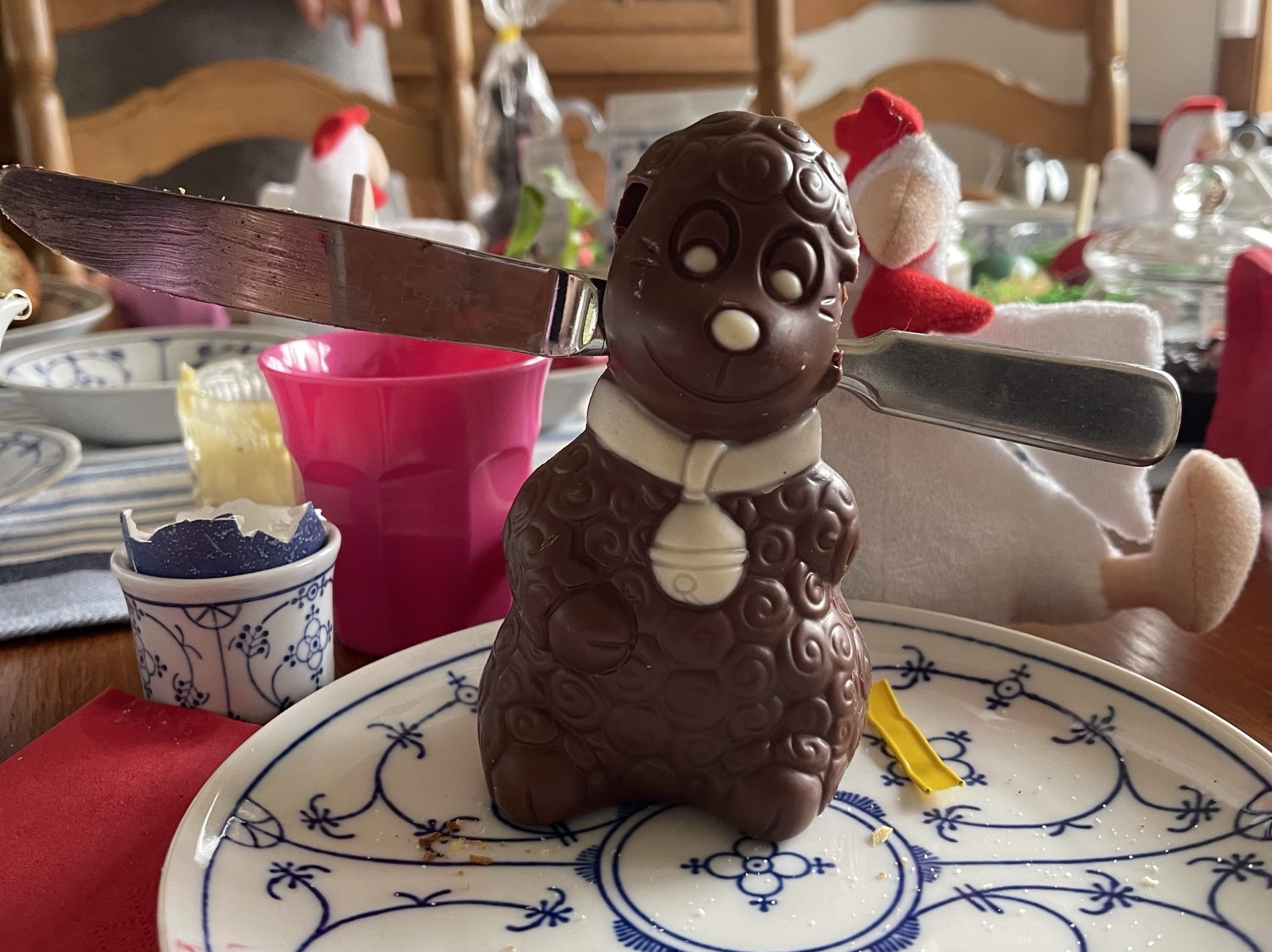 - Das vegane Schokoschaf dient vorübergehend als Messerhalter.