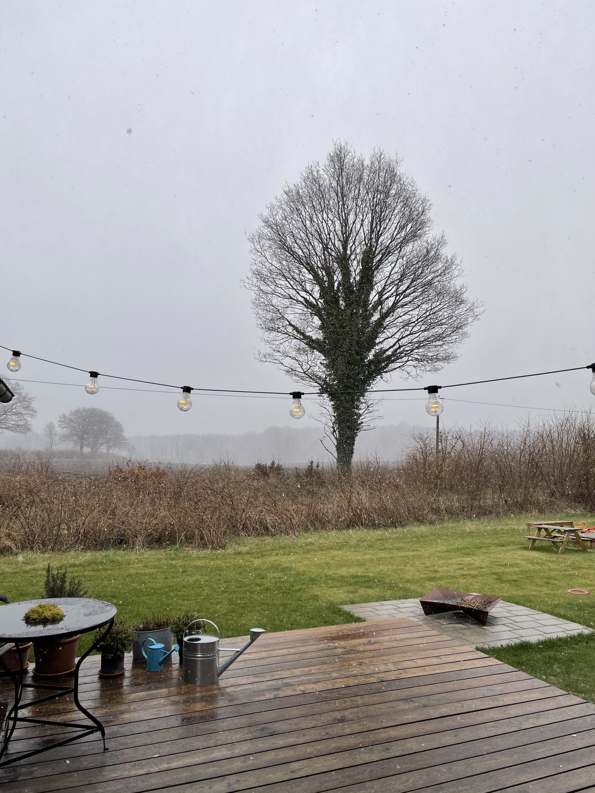 - Blick in den Garten bei Sauwetter