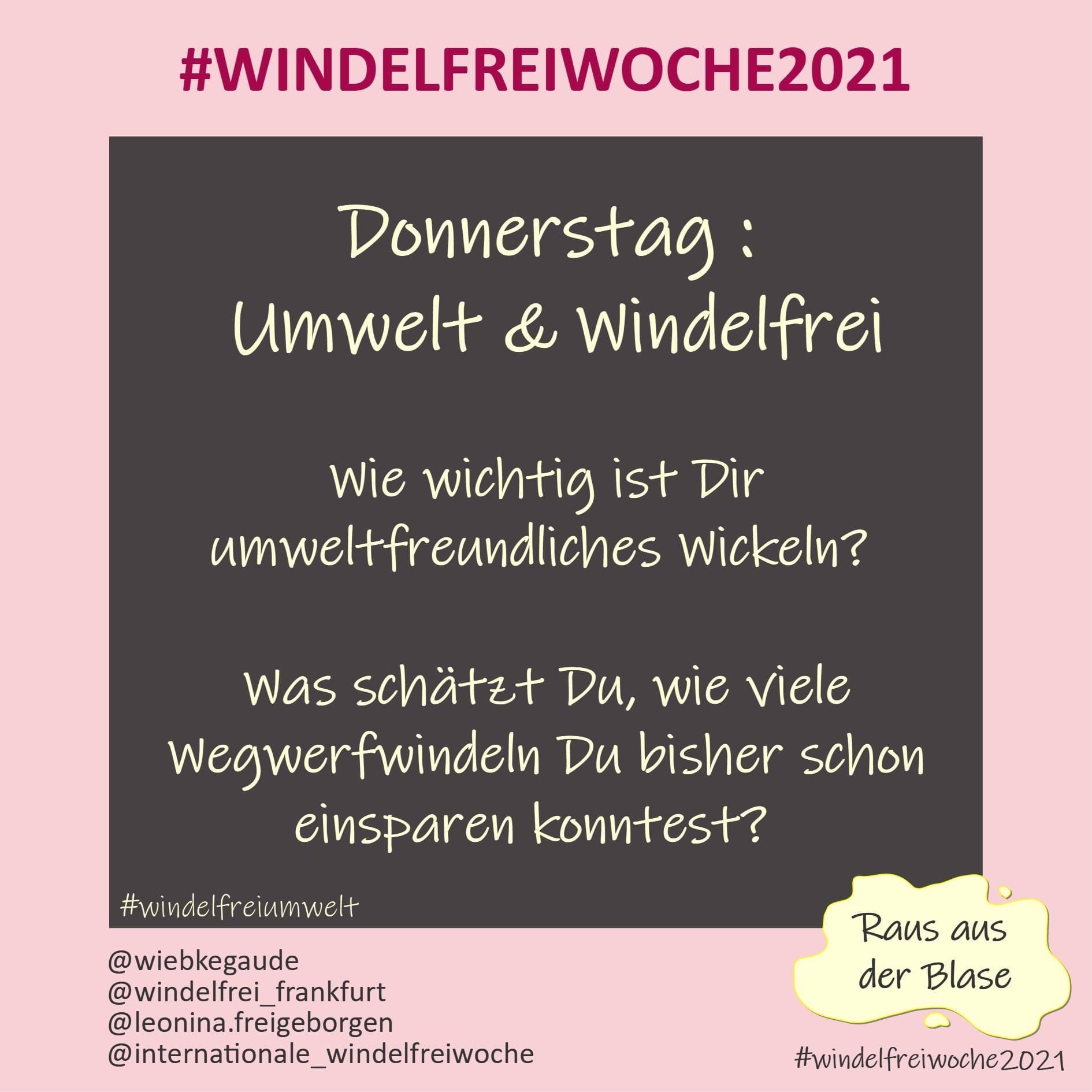 - Am Donnerstag: Umwelt! Ein super Grund für Windelfrei