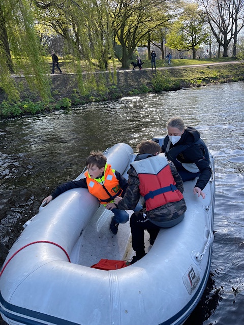 Dienstags beim Segeln (von E. und mir) durften die Jungs mit aufs Motorboot und sahen so Hamburg auch mal von der Alster aus. Nass und durchgefroren, aber glücklich, kamen sie wieder an den Steg zurück.