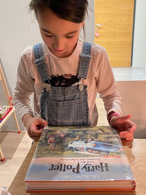 - E. hat das zweite, toll bebilderte Harry Potter Buch bekommen.