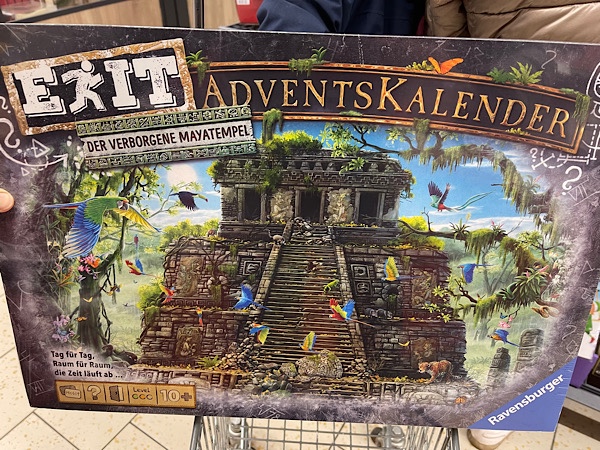 In den vergangenen Jahren hatten wir unseren Kindern individuelle Adventskalender gestaltet. Dazu haben wir schöne Säckchen an einer Schnur, die wir verschieden befüllen. Dieses Jahr hatten wir allerdings kaum Ideen, was wir da rein packen könnten. Schließlich gab es für beide Kinder zusammen einen gekauften Exit Spiel-Kalender und einen Säckchen-Kalender, den ich mit den Barbie-Sachen aus meiner Kindheit befüllte. So bekamen die Mädels Barbie-Klamotten, Barbies, Kens, Skipper und diverses Zubehör.