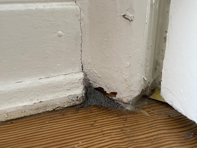 - Das Mauseloch ist mit grauer Masse gestopft.