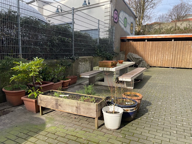 Das war aber nicht der einzige Besuch der Hausverwaltung… Am 14. Februar erhielt ich kurz nach 12 Uhr die Nachricht einer Nachbarin, dass der Innenhof gerade geräumt werden würde. Der Nachbarin ging es hauptsächlich um die Fahrräder, die eventuell jemand aus unserem Haus gehören könnten. Ich aber erschrak wegen unserer Sitzbank und den Pflanzen. Glücklicherweise war mein Mann auch zu Hause und wir kamen gerade noch rechtzeitig. Der Vermieter hatte wegen Gerümpel und rumstehenden Sachen über die Hausverwaltung zwei Männer zum Räumen und Säubern des Innenhofes geschickt. Bis auf die Sitzgarnitur war schon alles zum Entsorgen auf dem Hänger vor der Türe. Nach telefonischer Absprache mit dem Hausmeister halfen uns die netten Räum-Männer unsere Pflanzen wieder hereinzutragen und gemeinsam reinigten wir dann noch den Innenhof. Im Nachgang schickte mein Mann noch zwei nette Schreiben an den Vermieter, sodass wir nun die Sitzgarnitur und die Pflanzen dort stehen lassen dürfen – wenn wir uns ausreichend darum kümmern und den Bereich sauber halten.