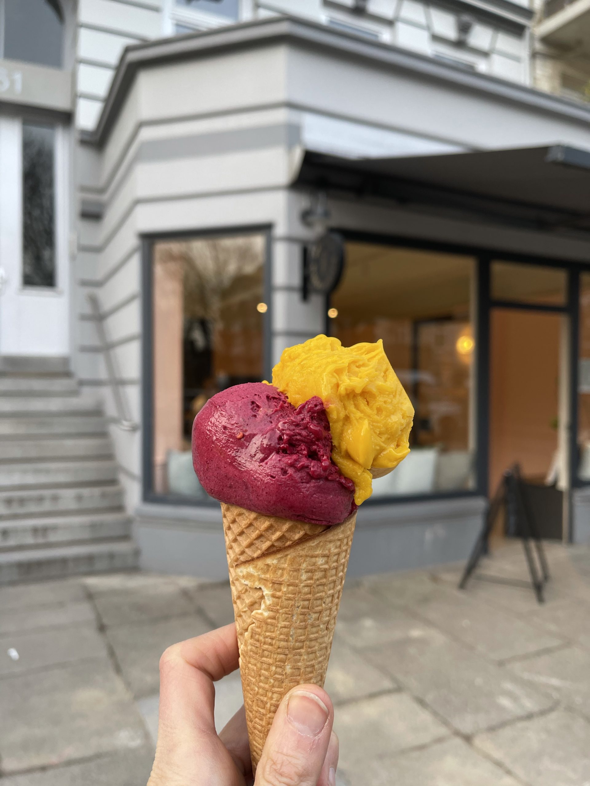 - Erstes Eis von der Eisdiele. Inkl. Schlange stehen mit Abstand.