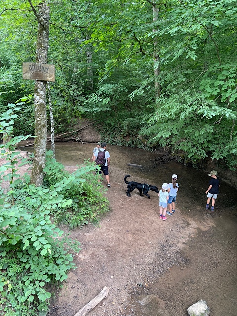 Die gesunden Tage nutzten wir für eine kleine Wanderung, Spaziergänge mit Nala (dem Hund meiner Schwester), Planschen im Pool, Freibad und einen Besuch meiner Eltern und meiner großen Schwester Biggi. Außerdem machte A. im Reutlinger Freibad am vorletzten Urlaubstag ihr Seepferdchen. Da hat das tägliche Pool-Training und die Unterstützung ihrer großen Schwester E. echt geholfen.