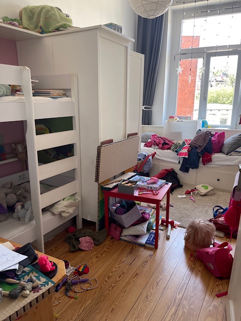 - Das Chaos im bisherigen gemeinsamen Kinderzimmer. Das habe ich zuerst beseitigt.