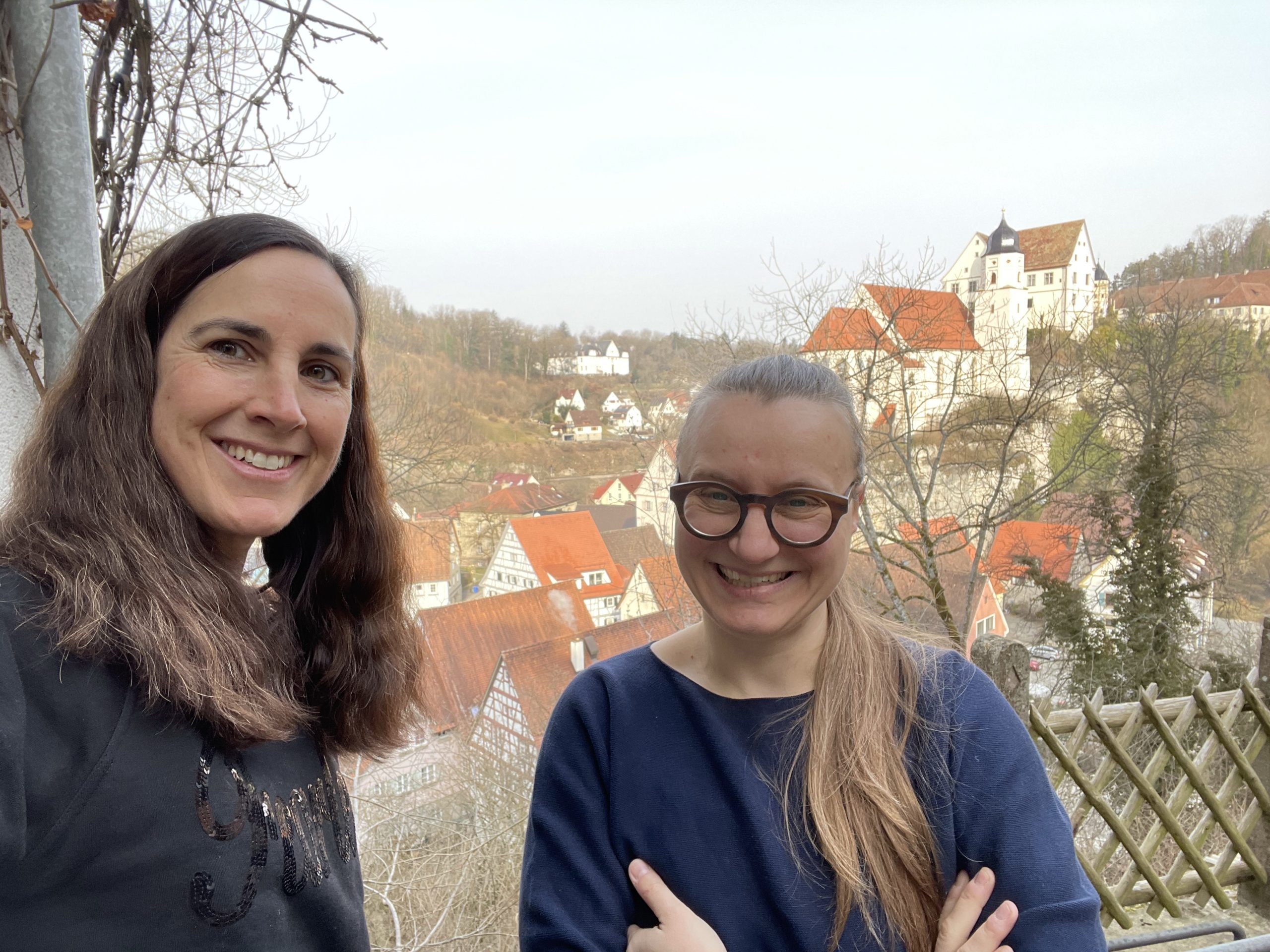 - Judith und ich. Im Hintergrund: das Haigerlocher Schloss