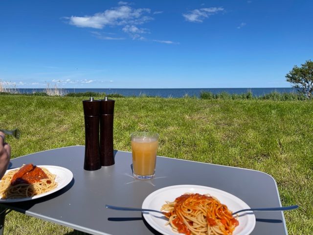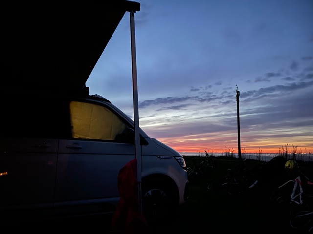 Da wir an Ostern nicht mit dem Bulli losfahren konnten, starteten wir einen zweiten Versuch über Pfingsten. Beim Verleiher unserer Wahl war ein VW California Coast frei. Damit fuhren wir auf einen Campingplatz nach Fehmarn, auf dem wir bereits letztes Jahr gute Erfahrungen gemacht hatten. Dieses Jahr hatten wir einen noch besseren Stellplatz ergattert – direkt am Wasser – und machten uns mit dem Patenonkel von Kind Nr. 2 und seiner Freundin ein paar wunderschöne Tage.