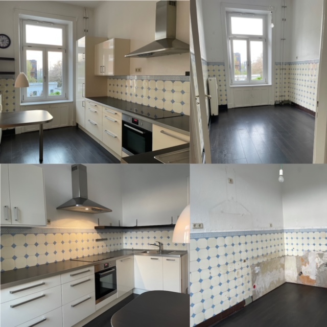 - Die bisherige Küche. Vor und nach dem Verkauf.