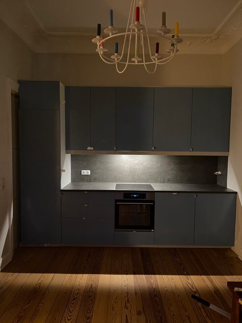 Fun fact am Rande: ich habe ein paar Bilder des Aufbaus in meinem Profil bei Insta und Whatsapp gepostet und darauf viel positives Feedback für unsere hellblaue Küche erhalten. Die Farbe der Küchenfronten ist aber hellgrau hochglanz. Wir haben die Schutzfolien noch drauf. 🙂