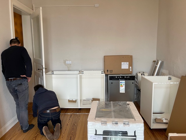 - Der erste Teil der Küche wurde geliefert.