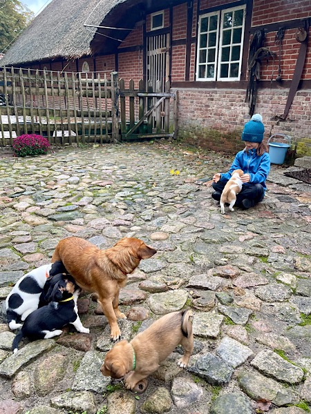 Das war aber noch nicht alles zum Thema Hund. Nun kamen zwei Dinge zusammen. Punkt eins: unser Nachbar wollte sich nach zwei Jahren ohne Hund wieder einen zulegen. Er besuchte mehrfach unterschiedliche Tierheime, aber entweder passte es für ihn vom Hund her nicht oder dieser war schon vergeben. Punkt zwei: Einer meiner Arbeitskollegen wusste, dass ich Hunde mag und gerne wieder einen eigenen hätte (aber mein Mann lieber eher später). Mein Kollege schickte mir Fotos von Welpen einer Bekannten. Diese Fotos zeigte ich unserem Nachbarn und er verliebte sich in eines der 5 Hundebabys. Um unseren Nachbarn zu unterstützen, fuhren wir am 19. Oktober mit ihm zum Welpen kennenlernen. Was soll ich sagen: Mein Mann und die Kinder fanden eine kleine Hündin ganz toll, die zufällig noch nicht vergeben war. Wir überlegten daher ernsthaft, ob wir doch jetzt schon einen Hund holen und diesen Welpen bei uns aufnehmen sollten. In unserem Frankreichurlaub fiel am 24. Oktober die Entscheidung: Wir nehmen Lotte! So heißt die kleine Hündin. Wir müssen dafür noch einiges umplanen und organisieren, damit sie im November bei uns einziehen kann. Aber wir freuen uns schon sehr! Mehr dazu kannst du dann sicher in meinem nächsten Monatsrückblick lesen.