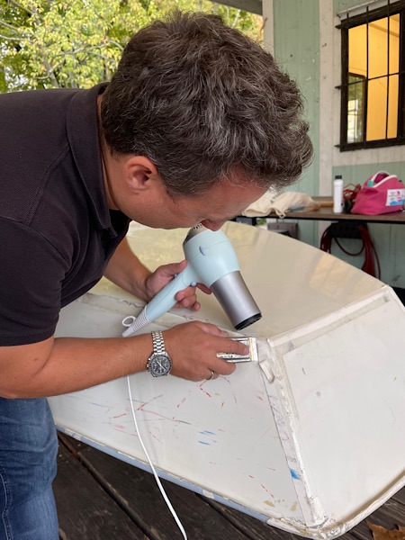 - Mein Mann macht eines der Segelboote unserer Kinder bereit für’s Winterlager.