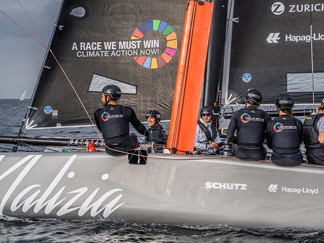 An einem ganz besonderen Segelevent durfte ich auf der Kieler Woche teilnehmen. Die Malizia hatte dort einen Stand und zwei Boote, ein Elektro-Motorboot und einen Foiling Katamaran. Da mein Mann Teil des Malizia-Teams ist durfte ich auf dem großen und sehr schnellen Foiling Katamaran der Malizia-Gruppe mitfahren. Ein Foiling Katamaran ist ein Renn-Katamaran mit sogenannten Foils (Schwertern), die das Boot komplett aus dem Wasser heben und dann so schnell wie kein anderes Segelboot fliegen lassen.