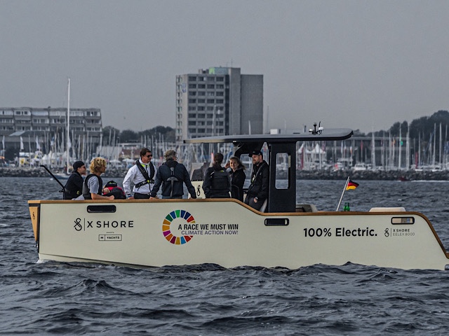 - Mit diesem Elektro-Motorboot fand der Transfer zum Katamaran statt.