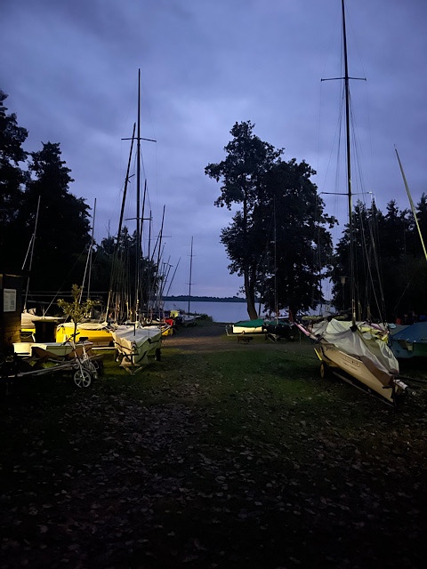 Ein weiteres wichtiges Segelevent fand bereits in der Woche danach statt: die German Open 2021 (Deutsche Segel-Meisterschaft) der Int 14 am Wittensee. Mein Mann fuhr bereits am Donnerstag hin und segelte mal wieder bei der Regatta mit. Außerdem übergab er nach 8 Jahren seinen Posten als Präsident der Int 14 an seinen Nachfolger. Ich kam mit den Kindern am Samstag im Leihwagen nach. Da mein Mann und sein Vorschoter an diesem Tag auf dem Wasser einen Zusammenstoß mit einem anderen Segelboot hatten, waren sie eine Weile mit Reparaturen beschäftigt. Zum Abendessen und Feiern waren sie damit dann schließlich fertig. Die Kinder und ich übernachteten auf der Ladefläche des geliehenen Kombis und verbrachten noch einen schönen Sonntag am Wittensee.